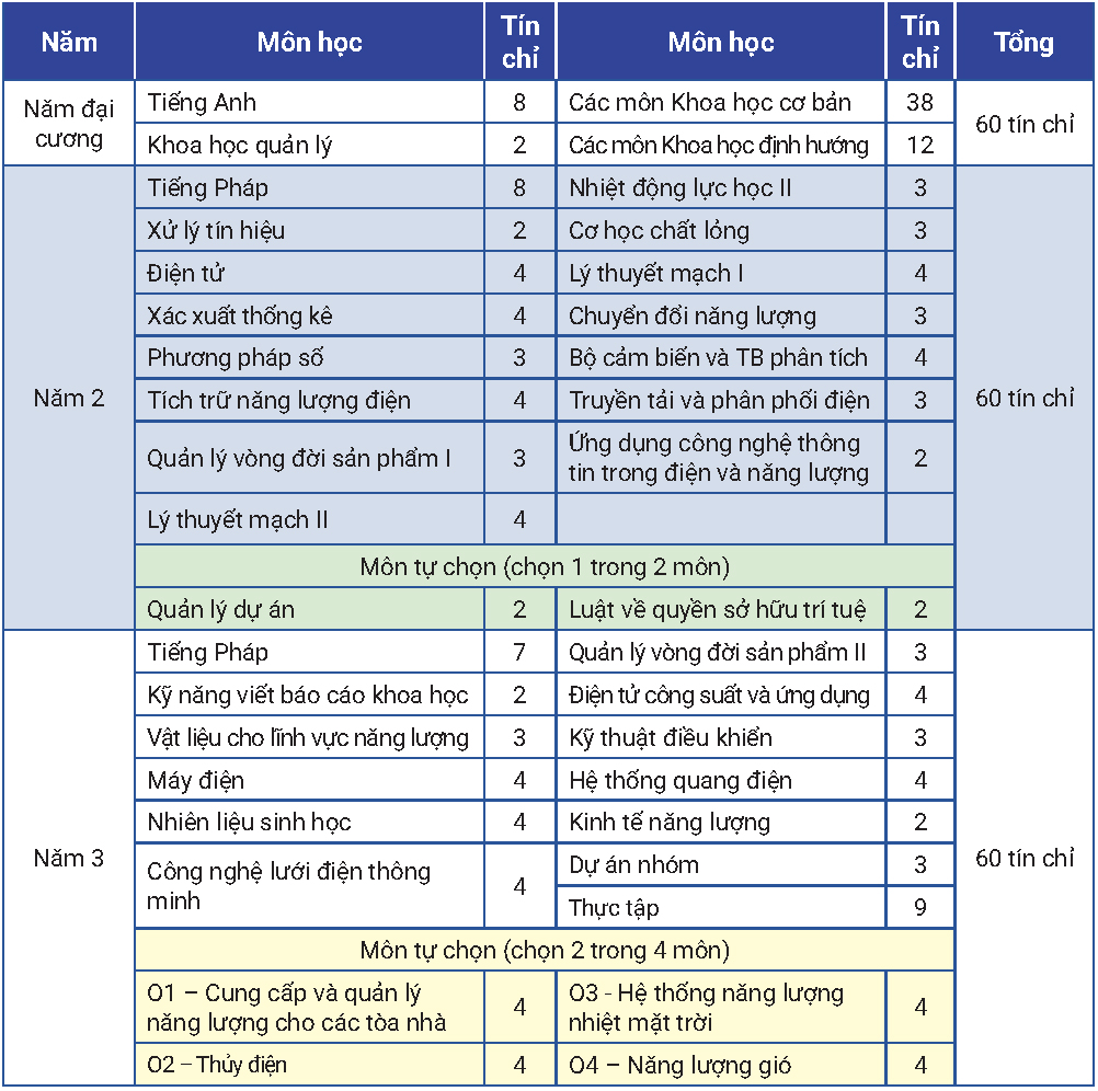 Chương trình cung cấp cho sinh viên nền tảng kiến thức cơ sở vững chắc về ngành học như: Kỹ thuật điện, điện tử, nhiệt động lực học, kỹ thuật nhiệt và chuyển khối.., cũng như kiến thức kỹ thuật chuyên sâu trong lĩnh vực sản xuất và sử dụng năng lượng, đặc biệt là truyền tải, phân phối và sử dụng điện năng.